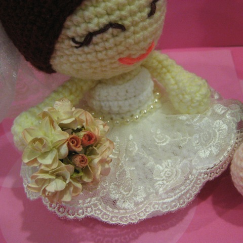 I don't have any doll pattern of 5" height... Hence, I had designed a new pattern. With inspiration from Lis's dolls and suggestions from my cousin, Hui, I manage to complete these two lovely dolls...